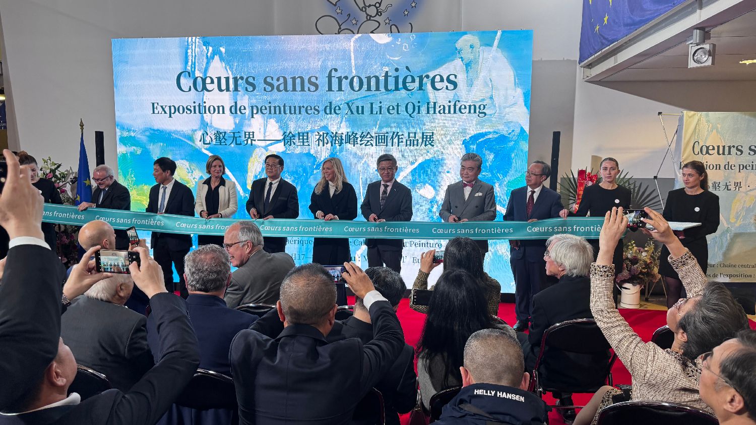 【欧洲时报记者黄冠杰巴黎报道】11月17日,由中央数字电视书画频道主办的《“心壑无界”——徐里、祁海峰作品展》在巴黎欧洲之家开幕。法国总统马克龙为展览发来的贺信。中国驻法国使馆临时代办陈栋,中国常驻联合国教科文组织代表团副代表王盈,书画频道董事局主席王平,中国美术家协会常务副主席徐里,巴黎欧洲之家主席米歇尔・德尔德韦,艺术家马修的夫人劳伦斯・格拉芬斯塔登,中国美术家协会副主席祁海峰,法国美术杂志集团主席索莱娜・布兰克共同为开幕式剪彩,联合国教科文组织副总干事曲星,法国前驻华大使、巴黎国际艺术城委员会主席顾山,参议院外交事务委员会副主席凯瑟琳·杜马斯,多维尔市市长菲利普·奥吉耶,菲利普・加尼耶侯爵,泰勒基金会主席让-弗朗索瓦·拉里厄等嘉宾以及法国各界及华人华侨等200余人出席了展览开幕式。