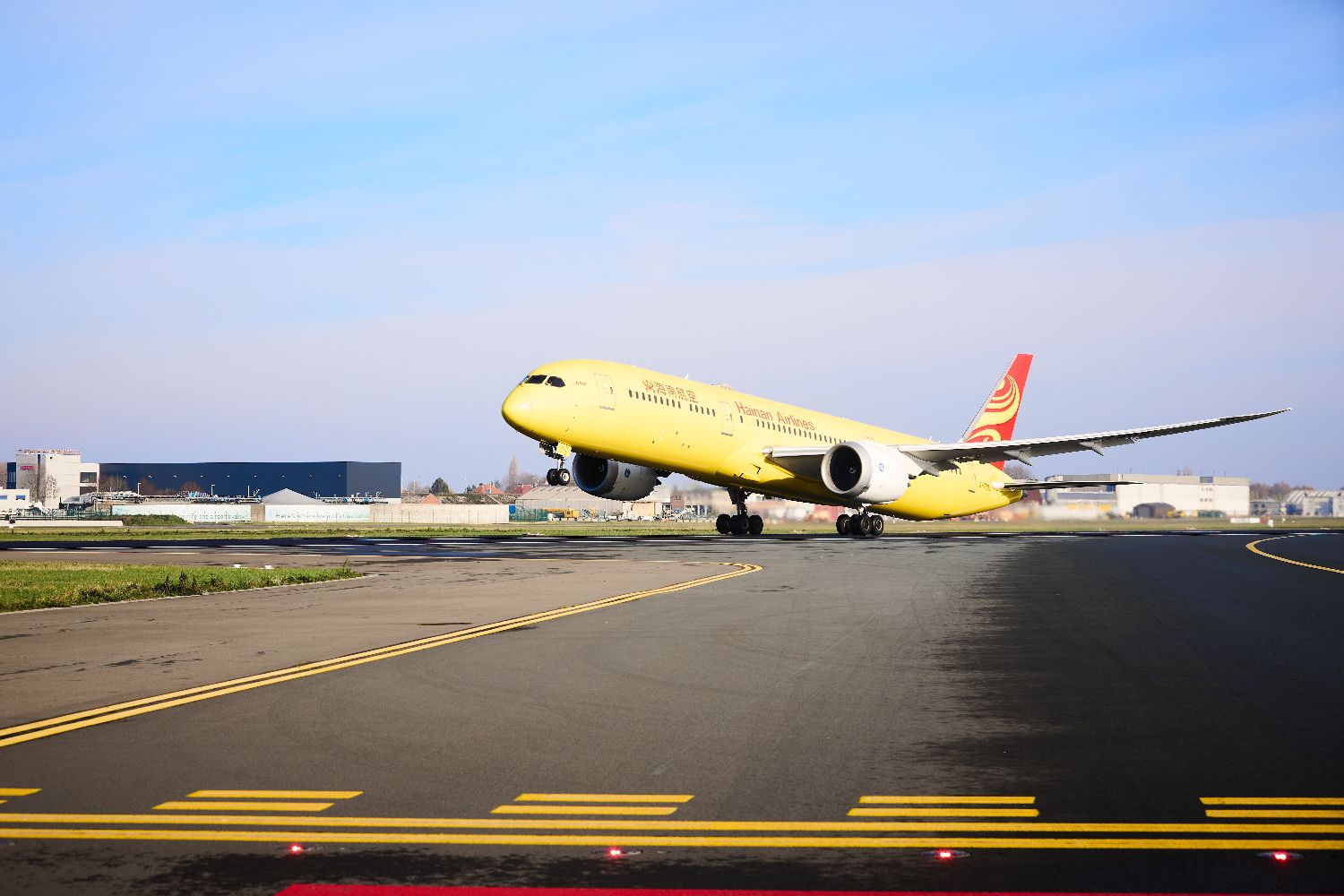 11月22日,在比利时布鲁塞尔国际机场,海南航空布鲁塞尔至重庆直飞航线首航航班起飞。(海南航空供图)