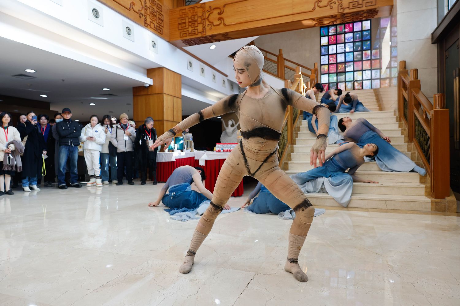 舞者表演“AI科技舞蹈”与中国传统舞蹈结合的作品。