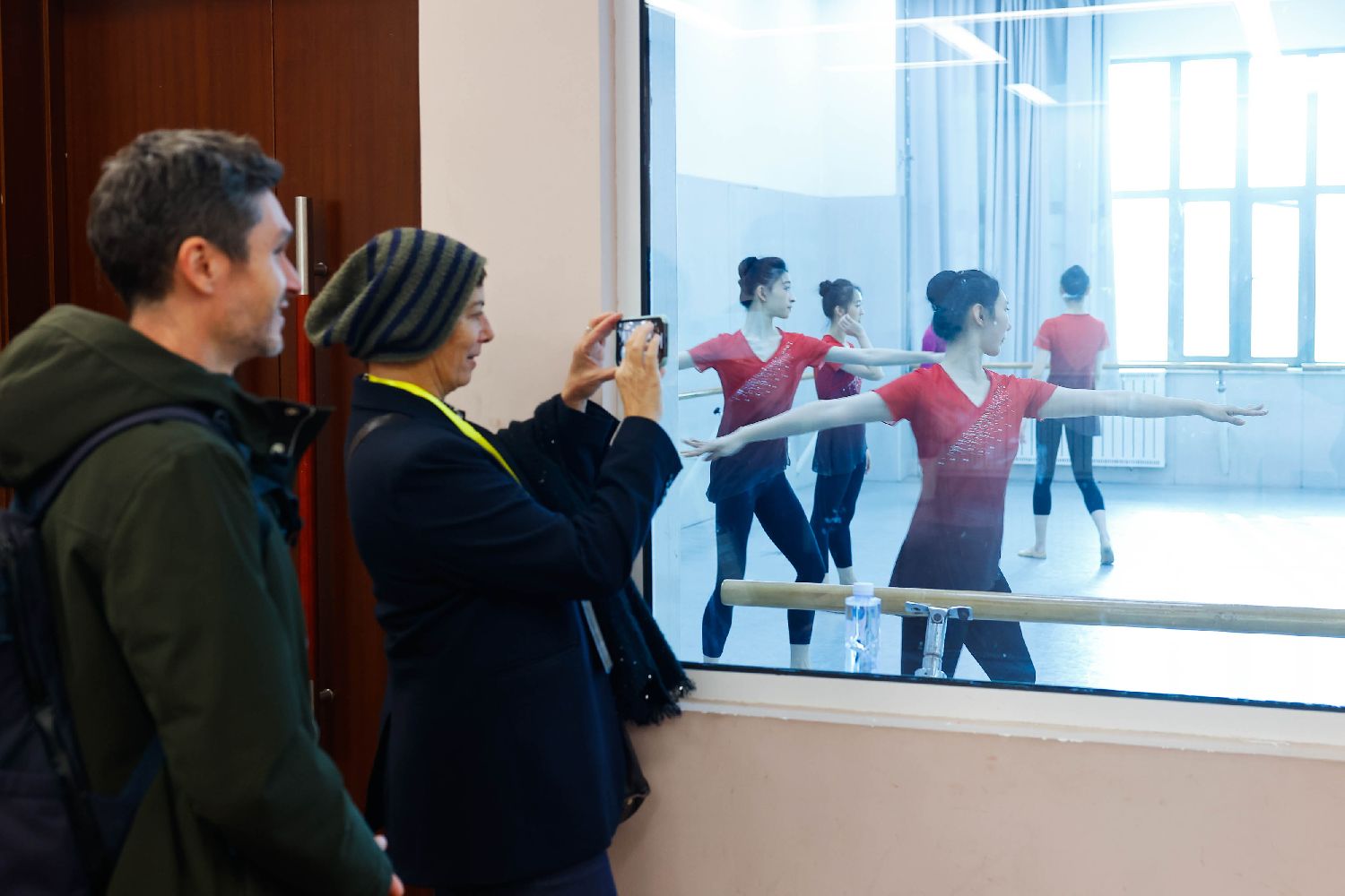 法国嘉宾在北京舞蹈学院观摩舞蹈课。