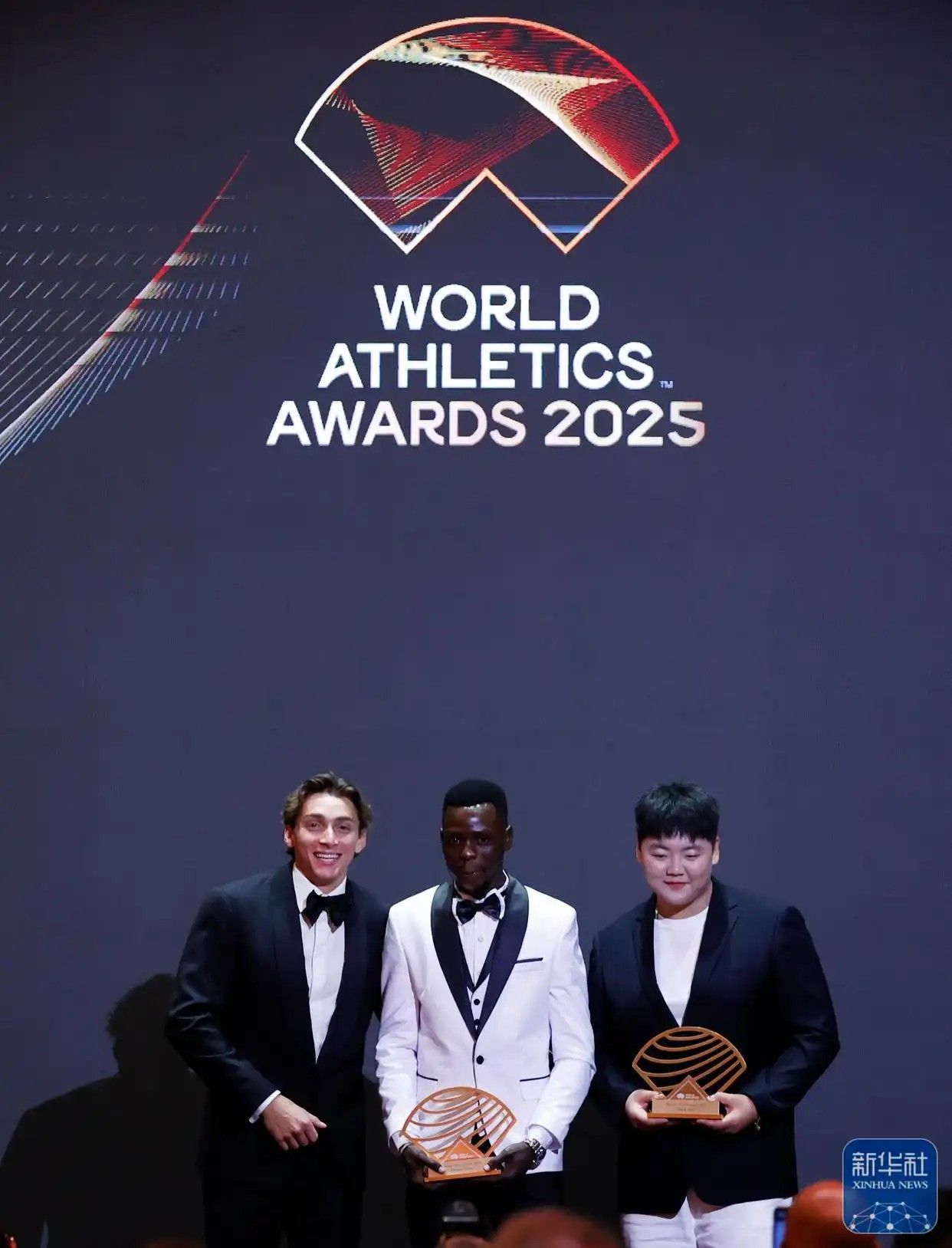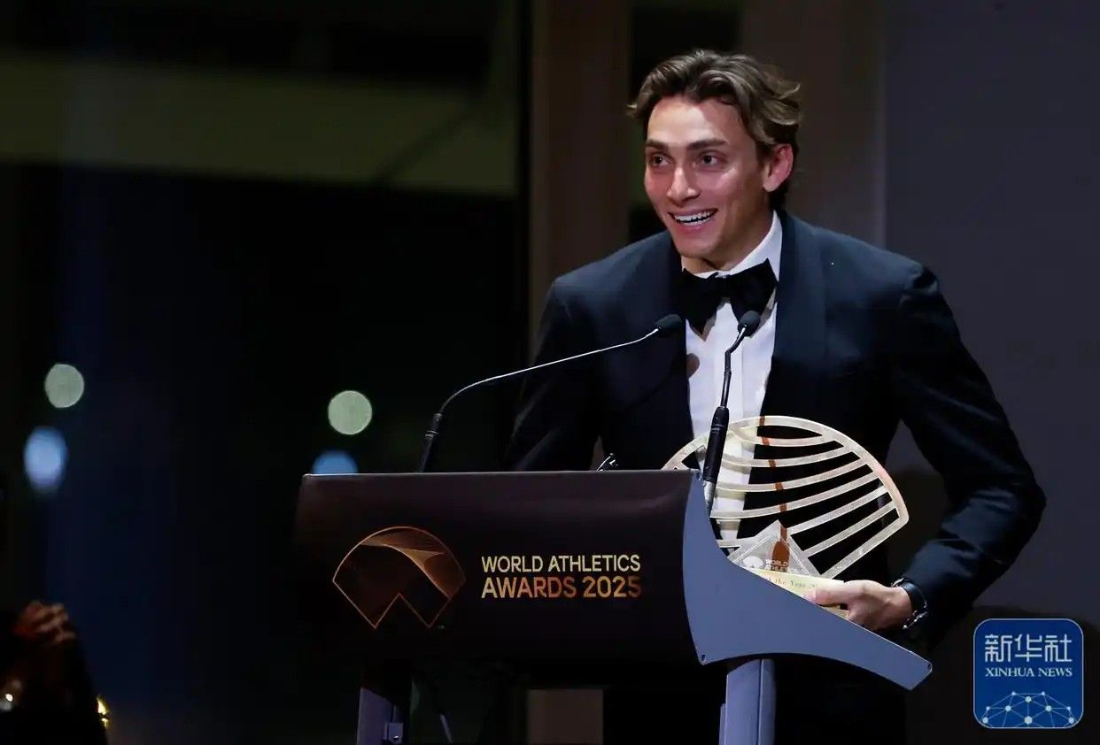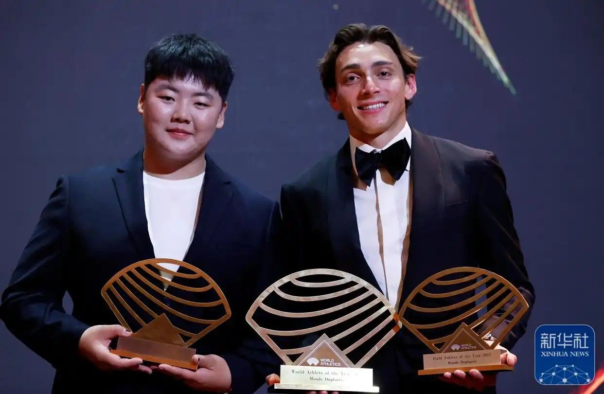 当地时间11月30日,2025年度世界田联颁奖典礼在摩纳哥举行。瑞典撑杆跳高名将杜普兰蒂斯、美国短跑运动员麦克劳克林当选年度世界最佳男、女运动员。中国女子链球运动员张家乐当选年度女子希望之星奖,中国田协获年度会员协会奖。
