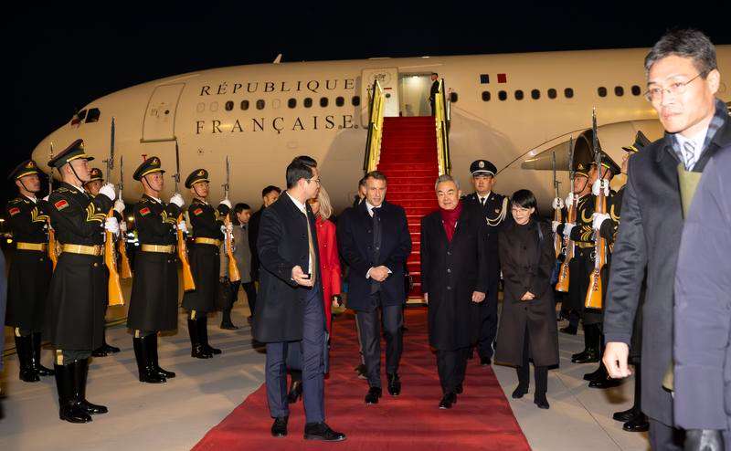 法国总统马克龙于北京时间3日下午抵达北京,开始对中国进行为期三天的国事访问。