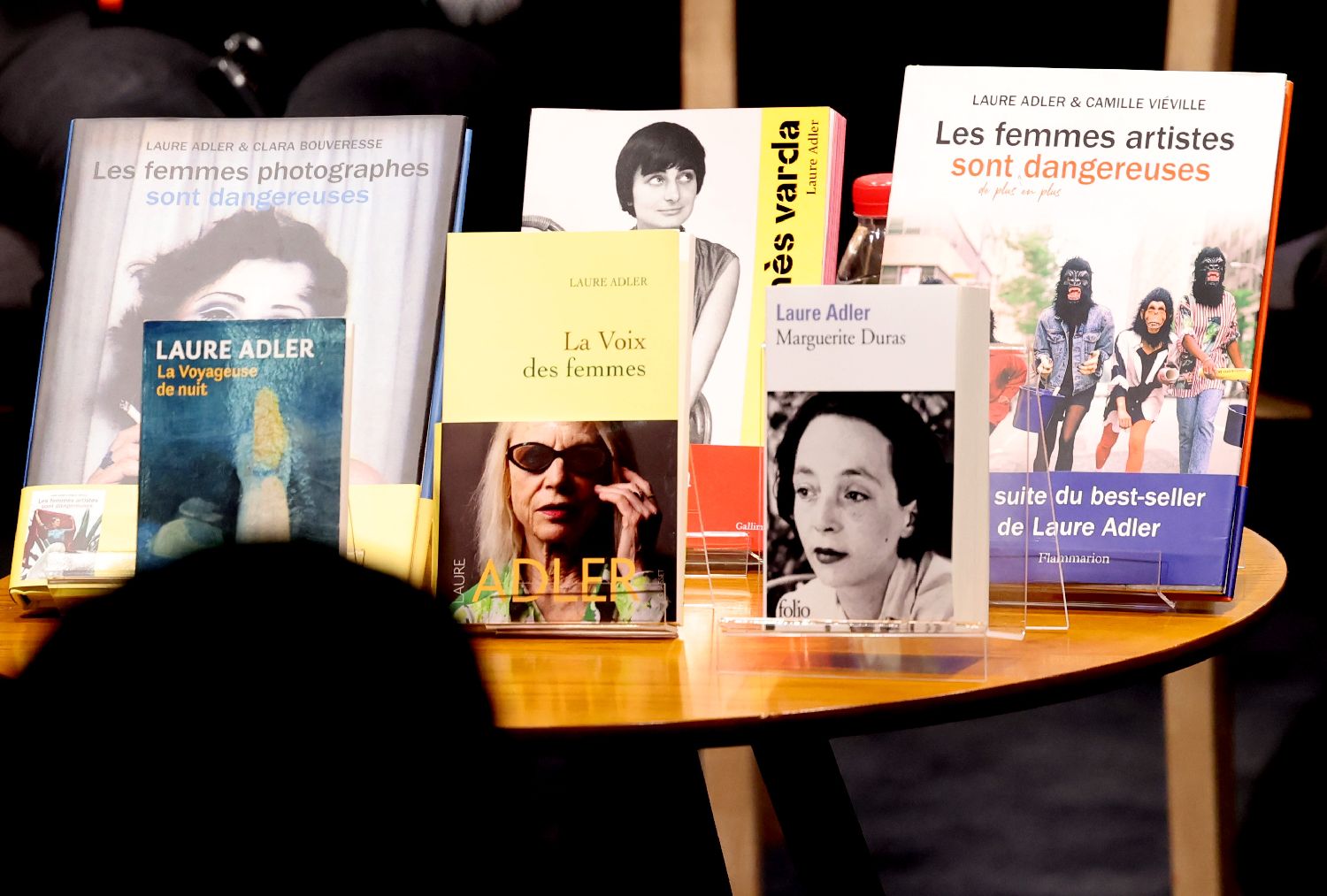 2025年12月13日,活动现场展示法国记者、作家洛尔·阿德勒(Laure Adler)的部分著作。( 图/卞戈)