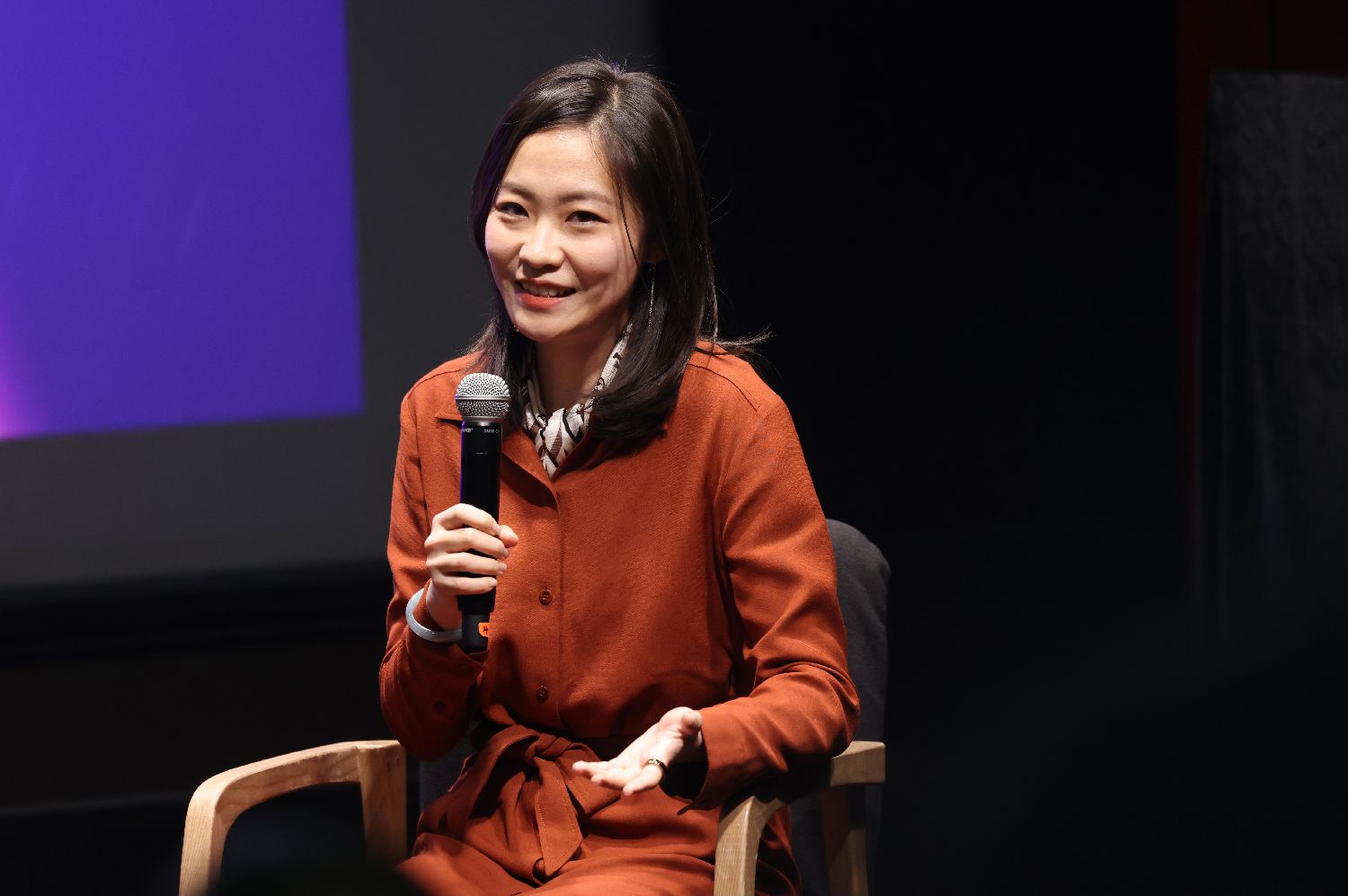 2025年12月13日,在法国发起女性健康创新智库SISTA Femtech的王偲嘉在活动上发言。 (图/卞戈)