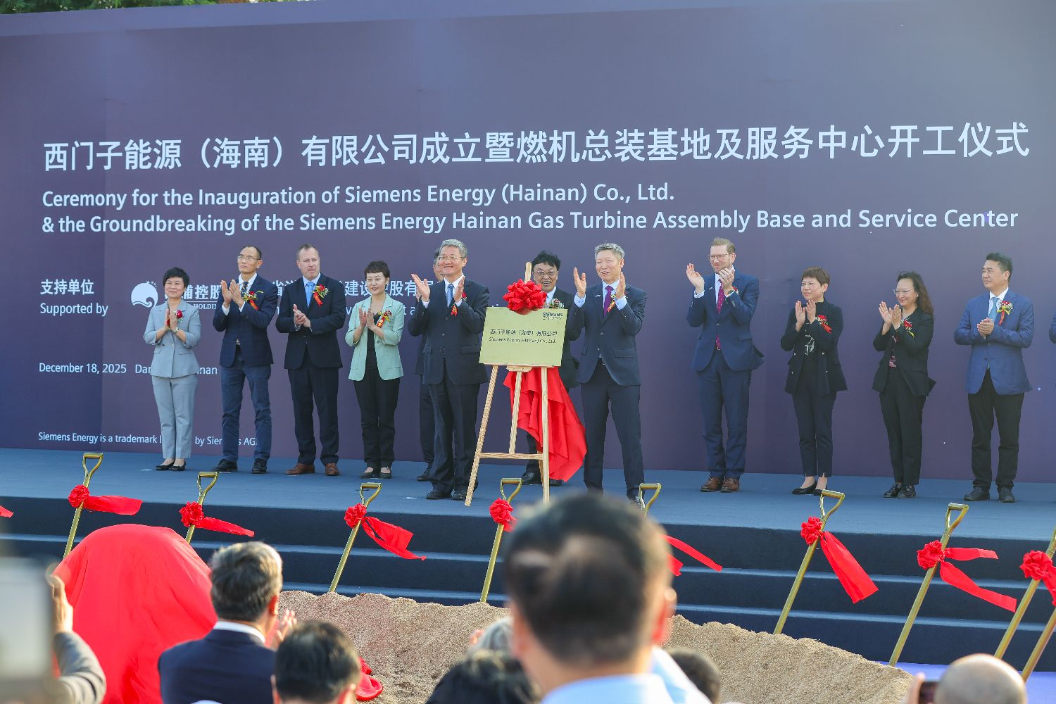 12月18日,海南自贸港正式启动全岛封关后首个制造业标志性外资项目——西门子能源(海南)有限公司在洋浦经济开发区成立,并同步开工建设燃机总装基地及服务中心。图为西门子能源(海南)有限公司揭牌仪式现场。(图片来源:中新社)