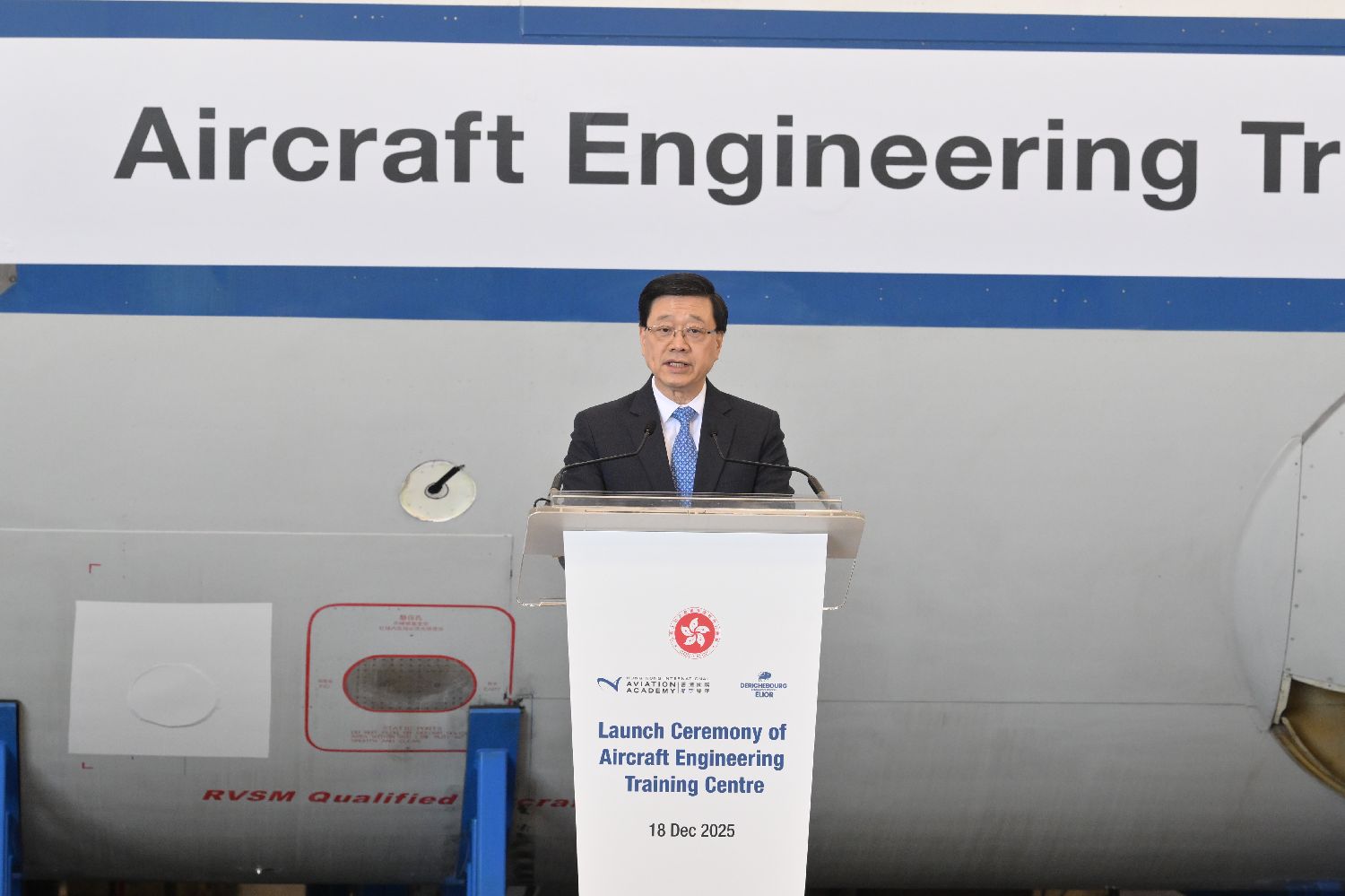 12月18日,由香港国际航空学院与法国领先航空服务公司Elior Group Derichebourg Aeronautics Services合办的航空工程培训中心正式启用。(图片来源:香港特区政府新闻处供中新社)