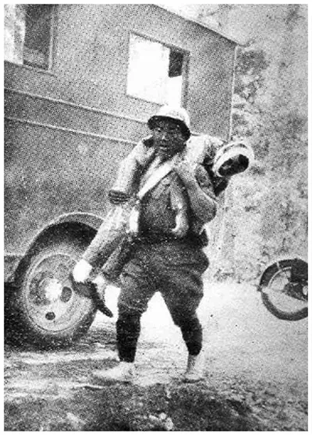 刘景田背负伤员的照片,被认为可能拍摄于塞哥维亚战役。