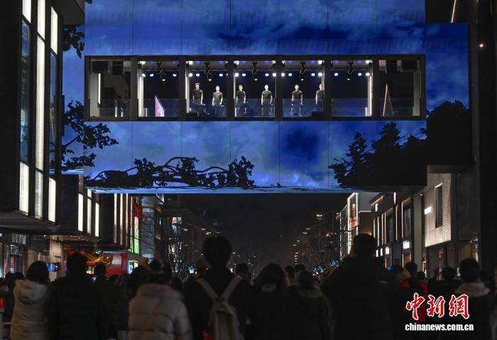 1月5日,爱尔兰国宝级舞剧《大河之舞》在浙江杭州西湖附近的西子廊桥上演,吸引游人驻足观看。(图片来源:本文图片均据中新网)