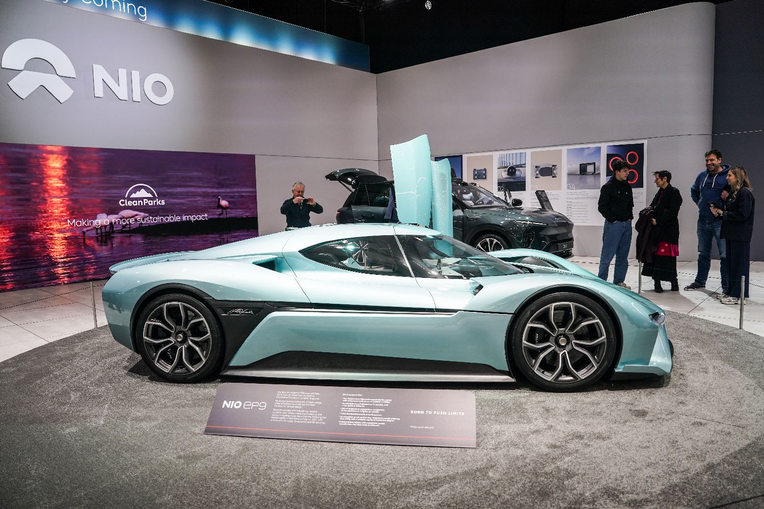 1月10日,在比利时2026布鲁塞尔车展上,观众参观蔚来展台。