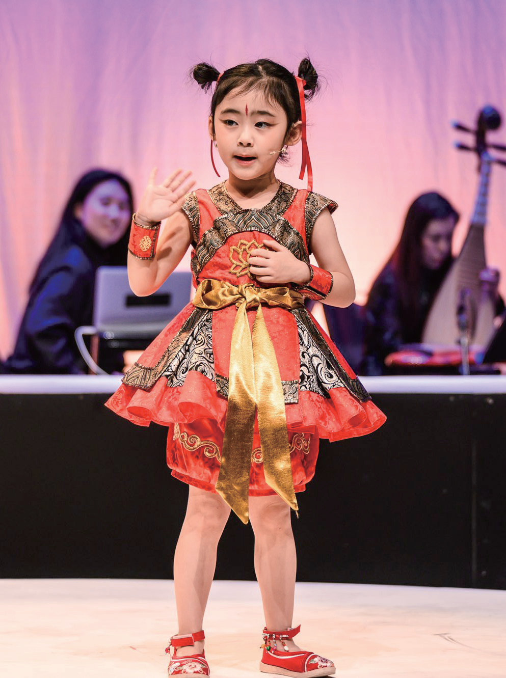 在音乐设计上,创作团队力求“中西合璧”。旅英琵琶、古琴演奏家程玉博士加入这次首演的演奏团队,为配乐注入了极具特色的东方韵味。此外,作品中还融入中国非物质文化遗产——贵州侗族大歌,主创团队还特别邀请贵州山区的孩童们录制了侗族大歌,当空灵又具有东方神秘气质的童声响起时,与现代音乐剧节奏感形成独特张力,成为演出一大亮点。