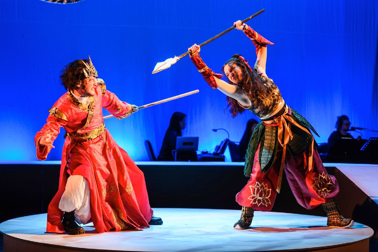 原创音乐剧《哪吒》伦敦首演的剧照,成年哪吒由伦敦西区演员扎雅•策仁巴特(Zaya Tserenbat)饰演。