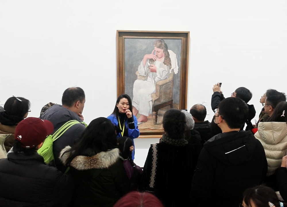 观众在毕加索名作《阅读的女人》前聆听讲解。(图片来源:本文图片均为陈伊摄)