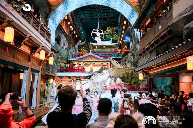 离岛后,团队前往“屿见闽南·时光幻境”主题景区观看演出《福熹鹭影》,并沉浸体验闽南非遗特色项目,部分博主还体验古装换装打卡拍照,午餐在景区内完成。