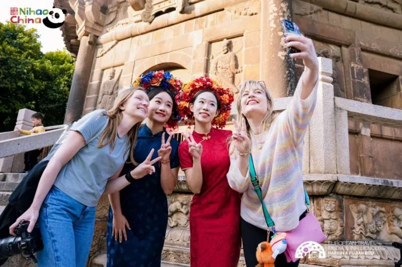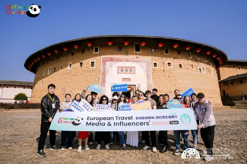 1月18日至19日,“探寻闽式生活,感知美丽中国——欧洲旅游媒体、网红博主福建行”进入高密度的“纵深段落”:从永定承启楼出发,转入泉州古城的钟楼、西街与开元寺,在城市烟火中读懂宋元海丝的开阔;再经蟳埔渔村的簪花围,将民俗之美戴在身上、拍进镜头;最后北上武夷山,在建盏拉坯与釉绘中触摸手作温度,以《印象大红袍》收束夜色与情绪。