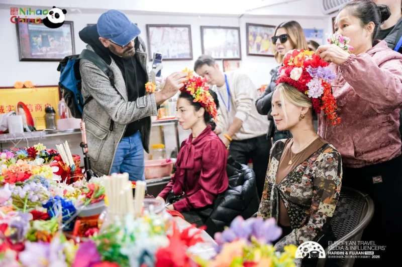 博主们互相帮忙整理花围、对着镜头大笑、拍完还要回放确认“是不是够好看”。一位法国博主说:“这是一种很高级的传统,它不要求你先懂,你先喜欢就可以。”这些话说得很轻,却很能打动海外观众:传统不是距离,而是一种可以亲近的日常美学。