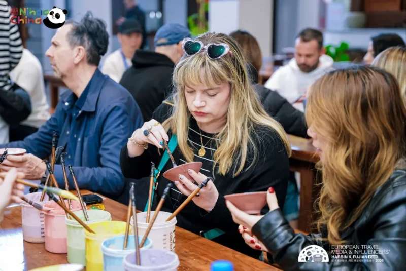 抵达后前往武夷山遇林庄园,体验建盏拉坯釉料绘制。手作的力量在于“让人安静”:指尖一专注,话就少了,眼神反而更亮。有人拉坯时连续失败三次,最后终于成形,抬头第一句话是:“这比拍十条短视频都更让我记住今天。”也有人说,建盏的美在克制:越做越懂,越懂越想带回去慢慢讲。