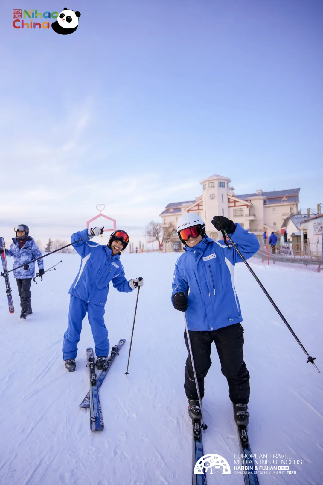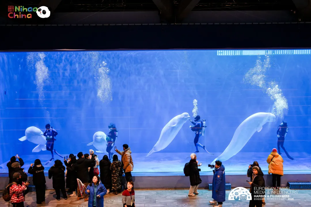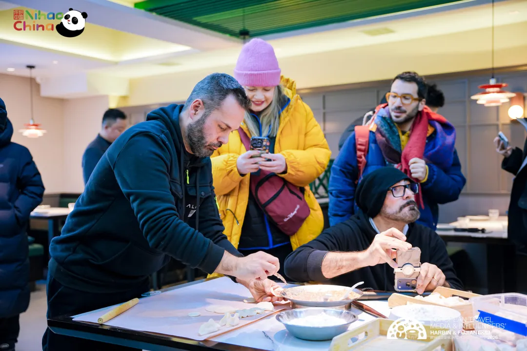 1月15日,“冰城闽韵——欧洲旅游媒体网红博主中国行”哈尔滨行程迎来收官日。为提升采风效率与内容维度,当日行程分为两条线路同步推进:A线直达亚布力国际滑雪旅游度假区(阳光度假村滑雪场)开展滑雪体验与拍摄;B线在城内走访东北虎林园、哈尔滨极地公园(10:30白鲸表演、11:30海豚表演)、宾鹏饺子馆包饺子体验与中华巴洛克历史文化街区。晚间两线在门家大院铁锅炖会合——雪道的速度与街巷的故事在同一天里并行生成,最后落回一桌热气腾腾的北方烟火,为哈尔滨之行画下圆满句点。