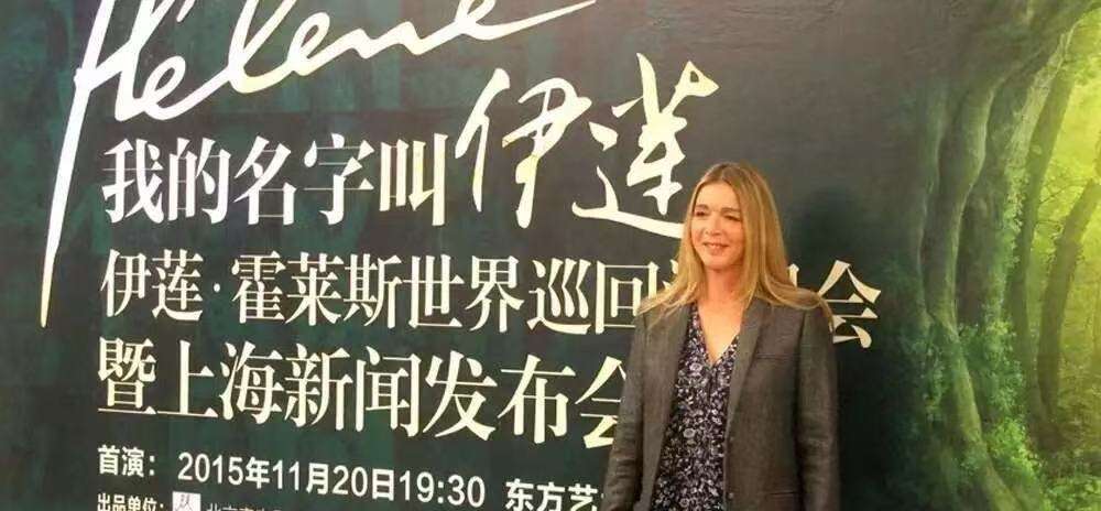 伊莲在2015年中国巡演时与海报合影。(图片来源:受访者供图)