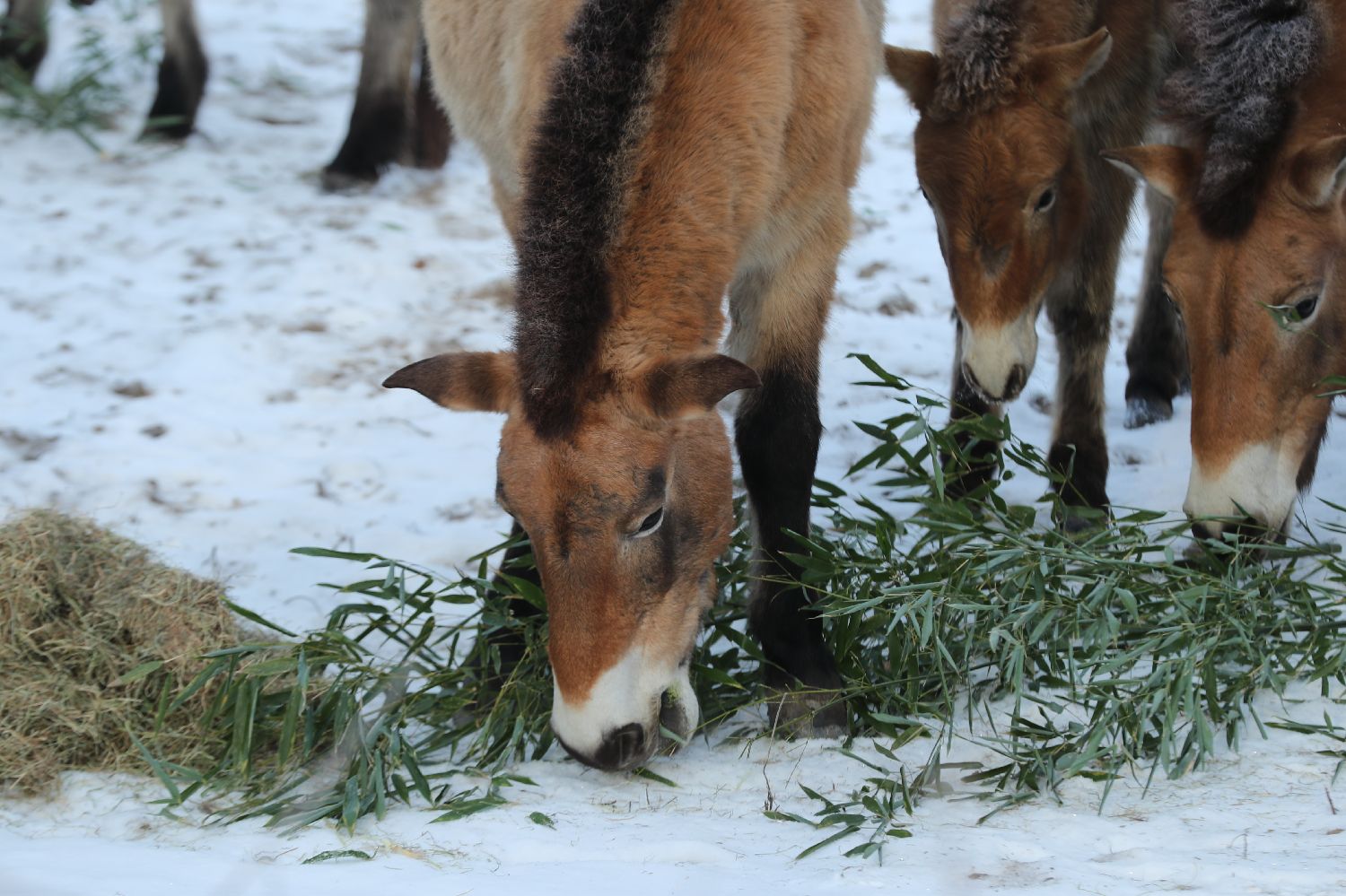 2月3日在甘肃濒危动物保护中心普氏野马饲养繁育基地拍摄的普氏野马。