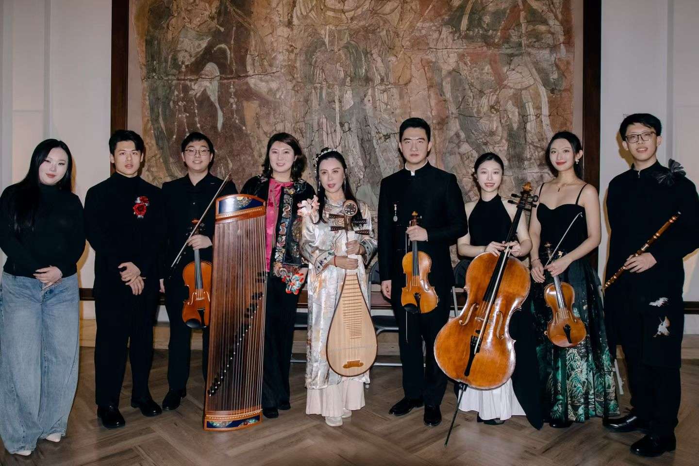 演出汇聚多位活跃于国际舞台的音乐家,包括曾任中国国家乐团琵琶独奏家的旅英民乐名家程玉博士(古琴、琵琶)、古筝演奏家洪悦,以及在英国皇家音乐学院学习的青年竹笛演奏家王政皓。此外,青年钢琴演奏家高宇声与青年弦乐演奏家王禹哲(小提琴)、杜秋佳(小提琴)、杜瀚霆(小提琴)、卢昱璇(大提琴)也参与演出,通过多元编制展现东西方音乐语言的对话与融合。