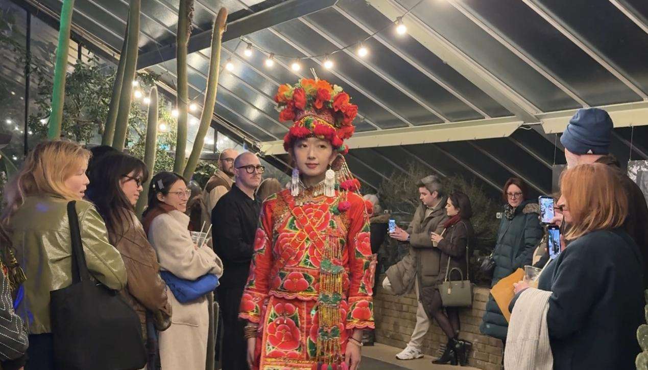 参与走秀的多位模特也分享了自己的体验。穿着大理东山彝族传统嫁衣的模特高丹悦介绍道,这类服饰并非一次性制作完成,而是从女孩出生起便由家人逐渐收集材料,最终在婚礼前亲手完成,承载着深厚的家庭与文化意义。“云南拥有二十多个民族,文化十分多元,希望通过这次活动向国际观众展示家乡丰富的民族文化,”她说,“这已经不是文化自信了,而是文化自豪,雄起!”