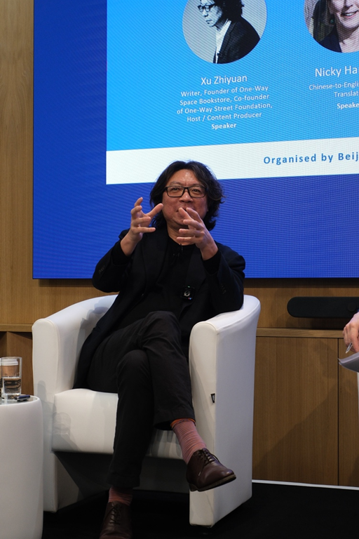 作家许知远出席伦敦书展的一场文化对谈活动。