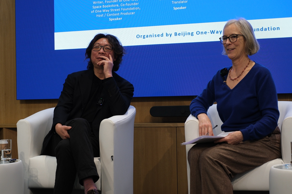 【欧洲时报记者田皓雪子图文报道】3月10日,伦敦书展(London Book Fair)“历史与旅行:中国的新写作(History and Travel:New Writing from China)”对谈活动上,中国作家许知远围绕写作、历史研究以及人工智能时代的文化变化,与现场读者展开交流,著名汉学家、翻译家韩斌(Nicky Harman)主持。