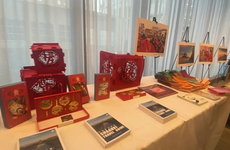 活动现场布置充满中国传统节日元素,红灯笼与“福”字相映成趣,陕西剪纸、手绣吉祥马型香包等中国非物质文化遗产作品吸引嘉宾驻足观赏;20余幅展现中国壮丽风光的图片组成“你好!中国”图片展环绕会场,让来宾沉浸式感受中国文化与旅游的独特魅力。