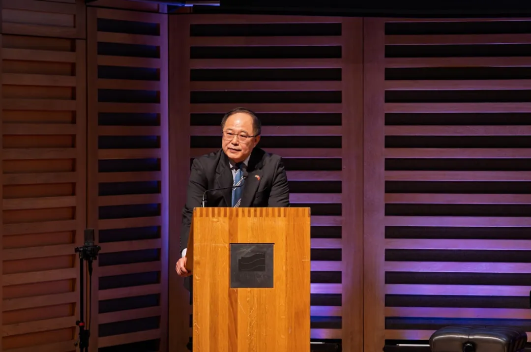 郑泽光大使出席并致辞,他在致辞中向来宾致以马年新春祝福,并对此次音乐会主办方、赞助方和参加演出的中外艺术家表示感谢。他表示,此次音乐会是中外文化交流互鉴、中华优秀文化传承创新的典范。国与国之间发展长期和建设性的关系,政治对话与经济合作必不可少,但文化艺术融通情感、沟通思想、凝聚共识,能发挥独特的重要作用。