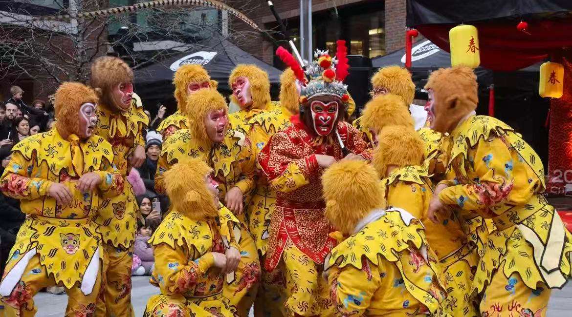 文艺演出以马年主题贯穿始终。火遍全网的非遗浙江婺剧团受邀远道而来,在伦敦街头展现了中国传统戏曲的高超技艺与磅礴气势,精湛的表演赢得满堂喝彩,《金猴闹春》和《九节龙》更是引得众人欢呼。