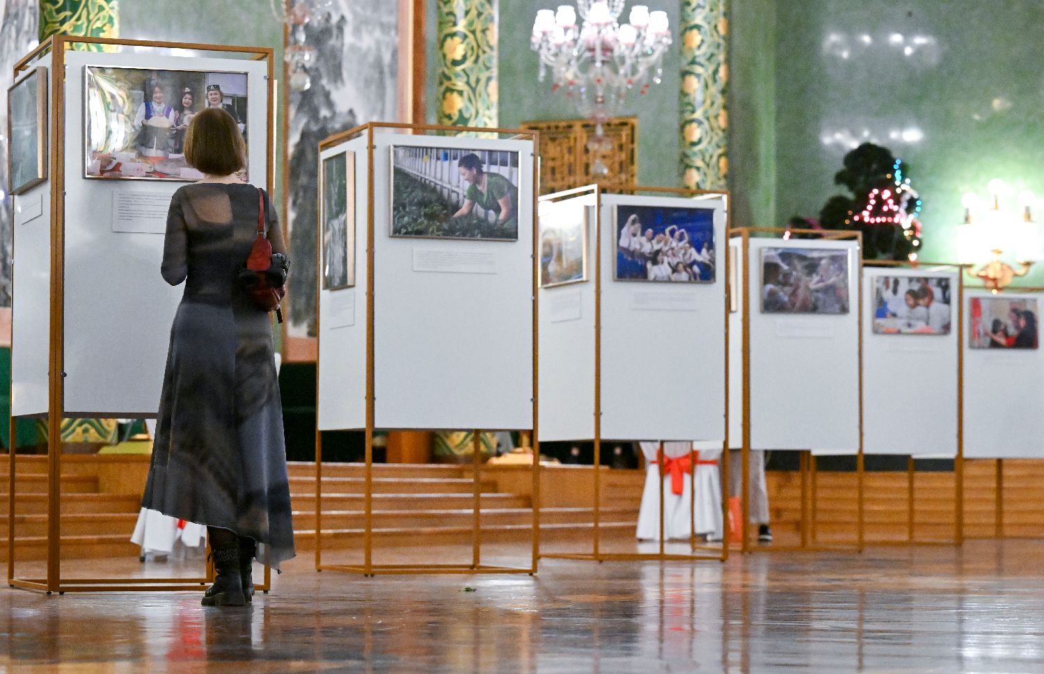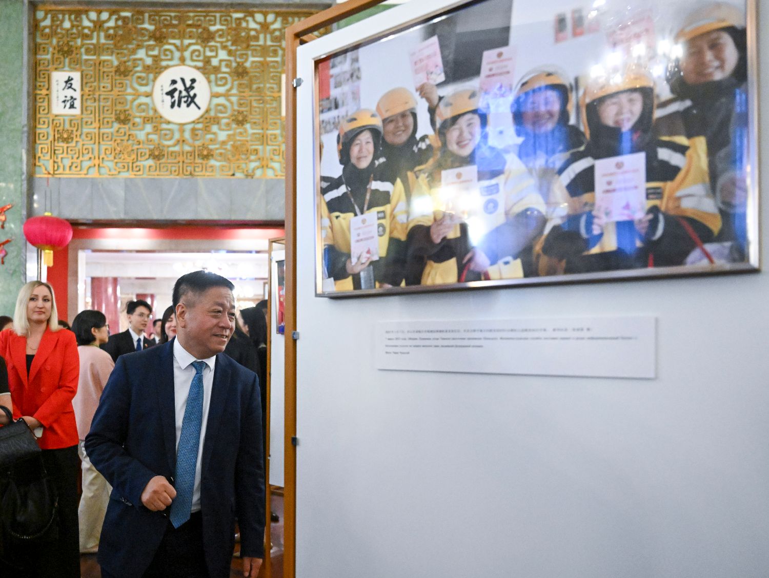 3月20日,在俄罗斯首都莫斯科,中国驻俄罗斯大使张汉晖参观“繁花绽放:中国式现代化的主角”中国妇女事业发展成就图片展。(图片来源:本文图片均据新华社)