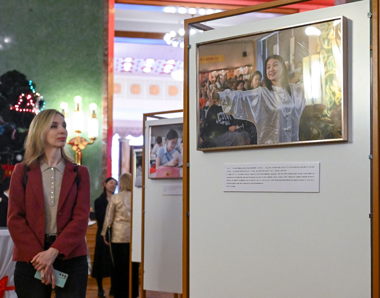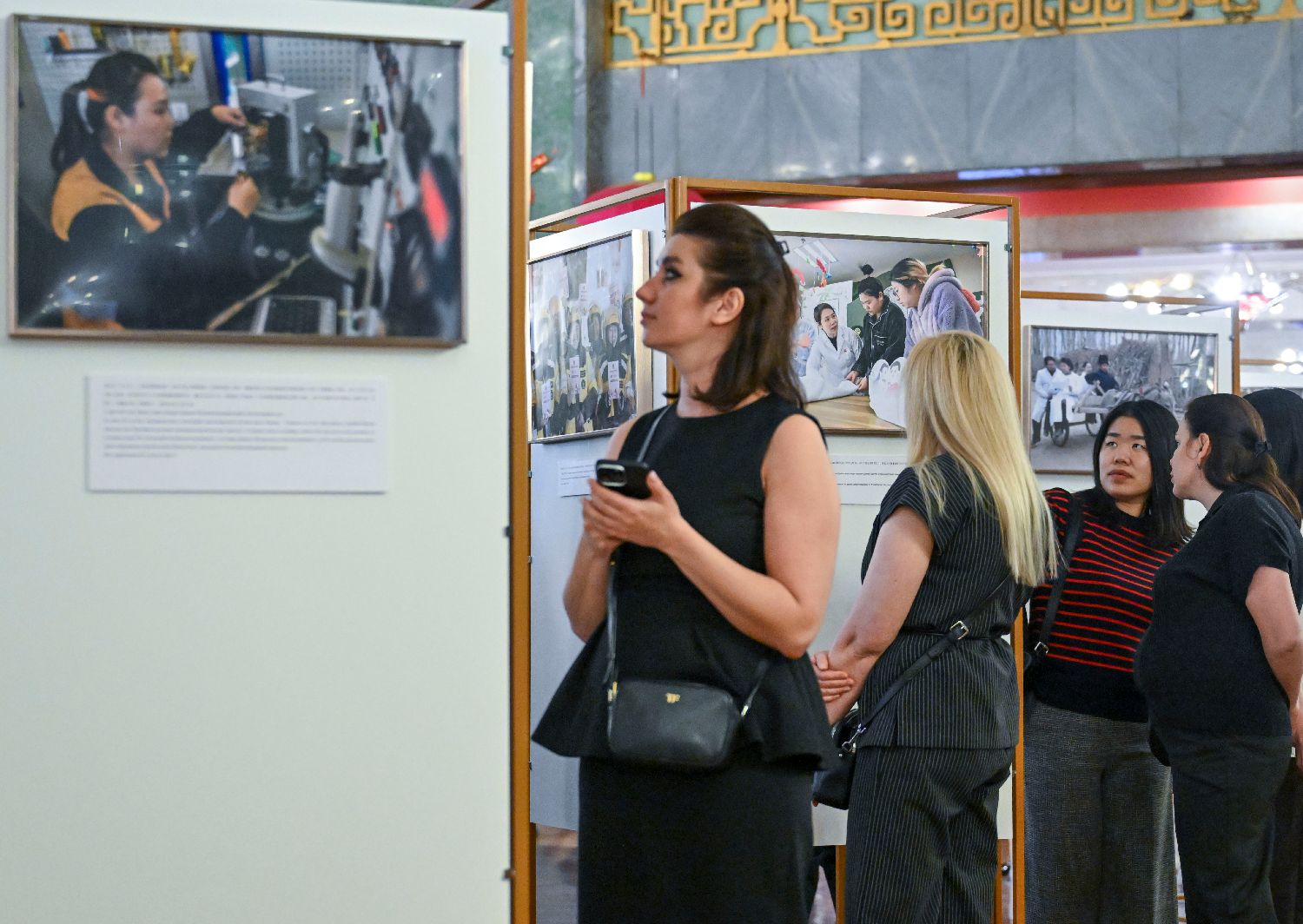 3月20日,在俄罗斯首都莫斯科,嘉宾参观“繁花绽放:中国式现代化的主角”中国妇女事业发展成就图片展。