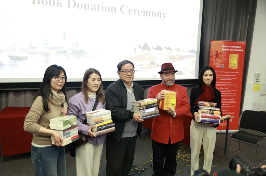 雪漠基金会向伦敦大学亚非学院捐赠上百册雪漠作品。(图片来源:张建军摄)