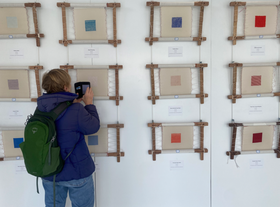 “苏绣:一项千年传统的觉醒”展览上,参观者在拍摄传统苏绣针法样本。(图片来源:欧洲时报记者严振羽摄)
