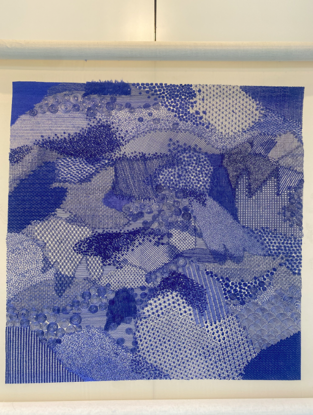 此外,展览同步推出姚惠芬、姚惠琴创作的两件全新作品,以单一色系丝线为媒介,通过针法穿插、叠压与节奏变化构建出层层递进的肌理结构。画面不再依赖具象图案,而是将针法本身作为视觉核心,使刺绣从再现性的技艺转向对自身结构与表达边界的探索。这些模块不再是“图案的载体”,而是针法自身的纯粹表达——针脚成为笔触,丝线成为颜料,刺绣成为一门自律的艺术。