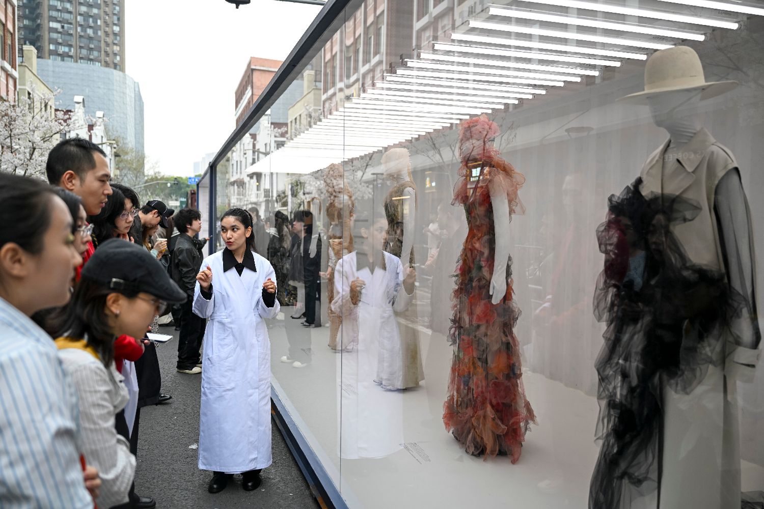 4月2日,作为2026秋冬上海时装周系列活动之一,法国时尚品牌Maison Margiela在上海市黄浦区雁荡路街头举办“高级定制”展览,让市民游客在街头感受上海独特的时尚氛围。