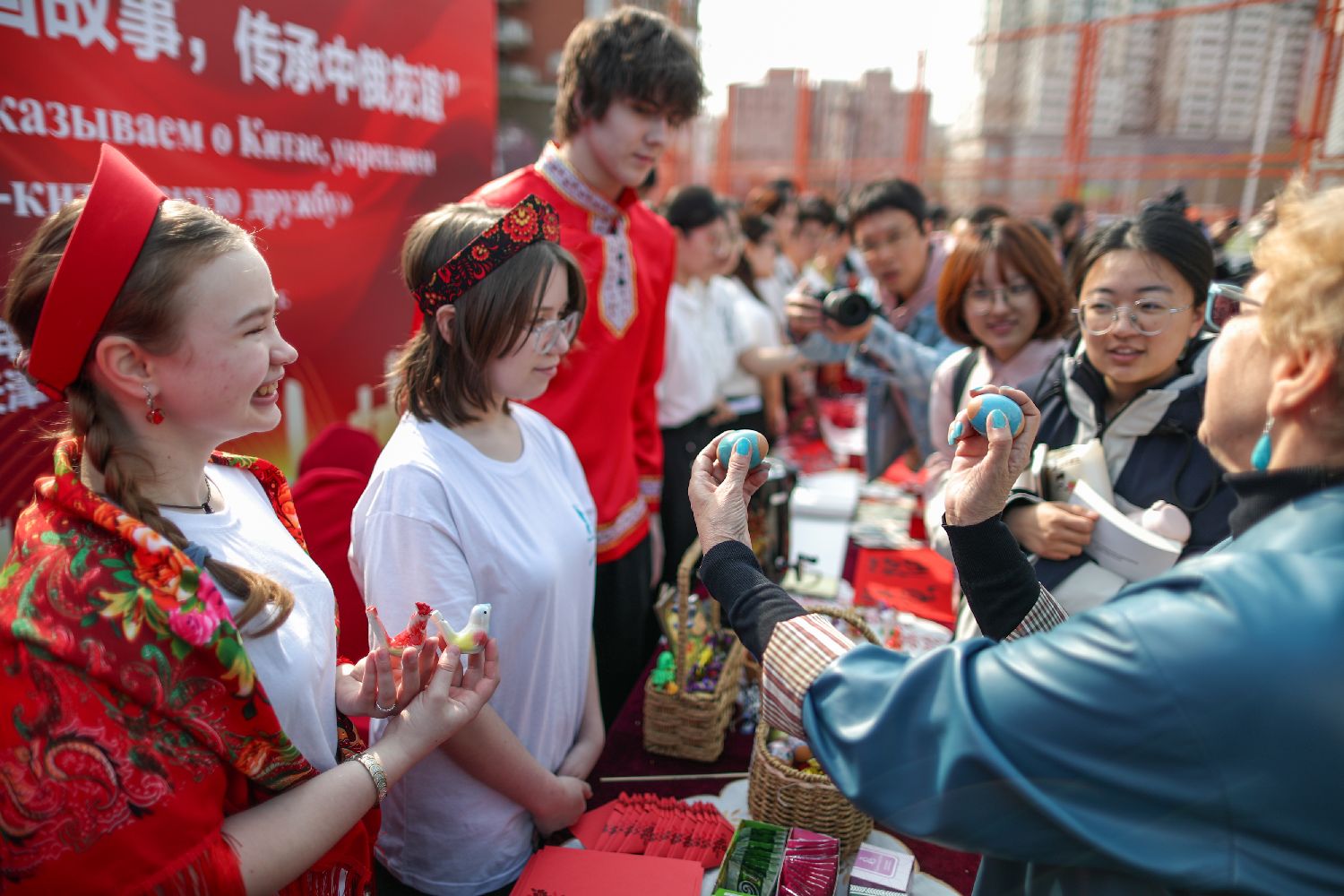 中俄学子参观中俄文化市集。(图片来源:中新社)