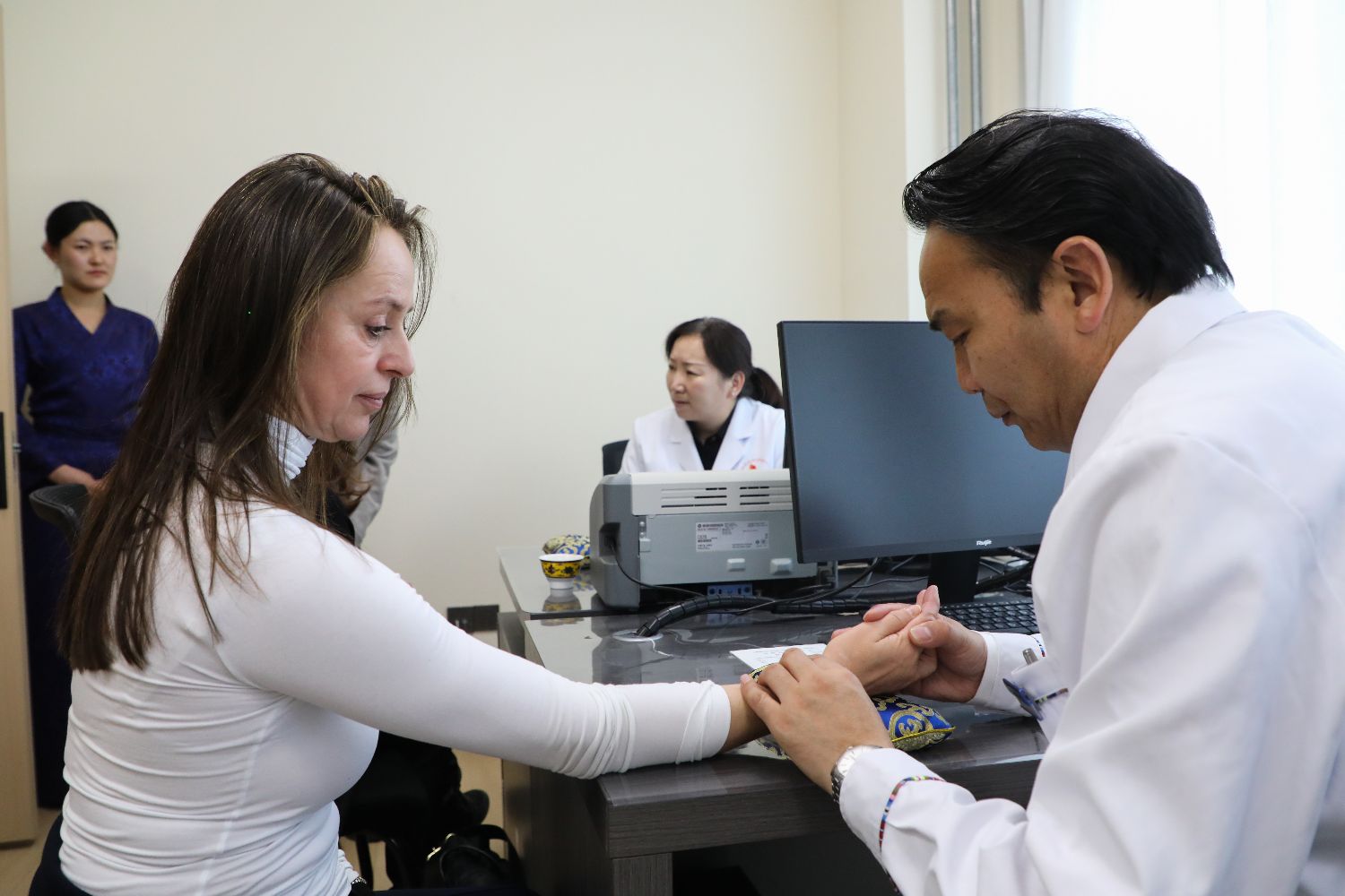 代表团成员在青海省藏医院体验特色诊疗。(图片来源:中新社)