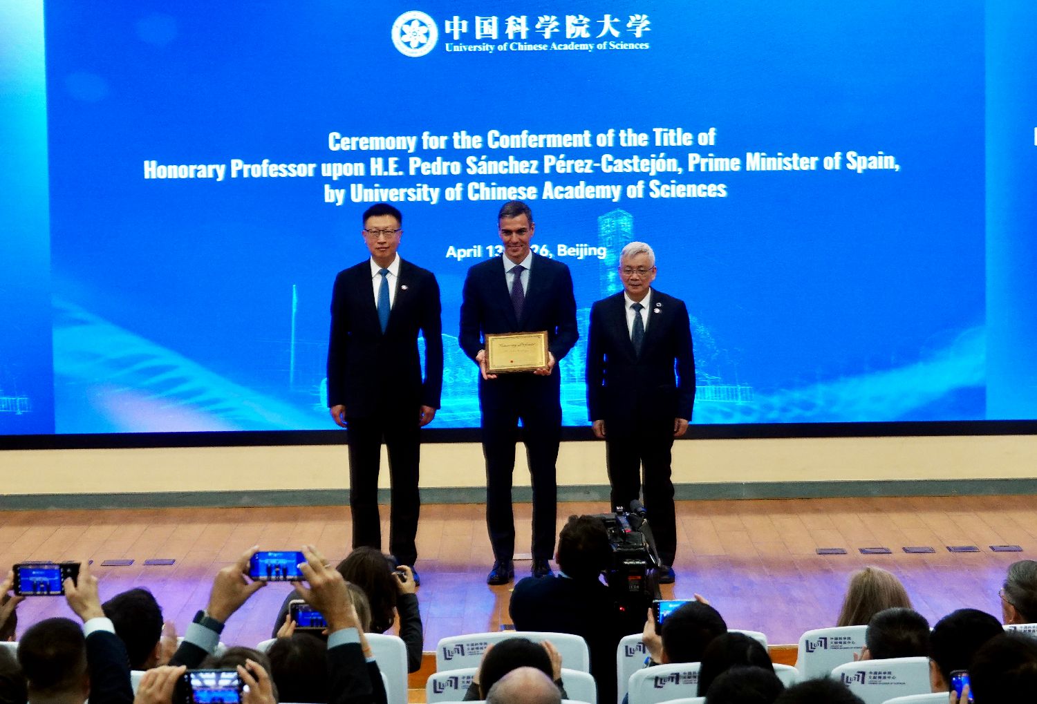 西班牙首相桑切斯访问中国科学院并接受国科大名誉教授称号