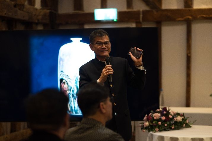 睿智医药董事长兼CEO胡瑞连(左三)和慈善拍卖竞得者们合影。(图片来源:本文图片均自欧洲时报英国版)
