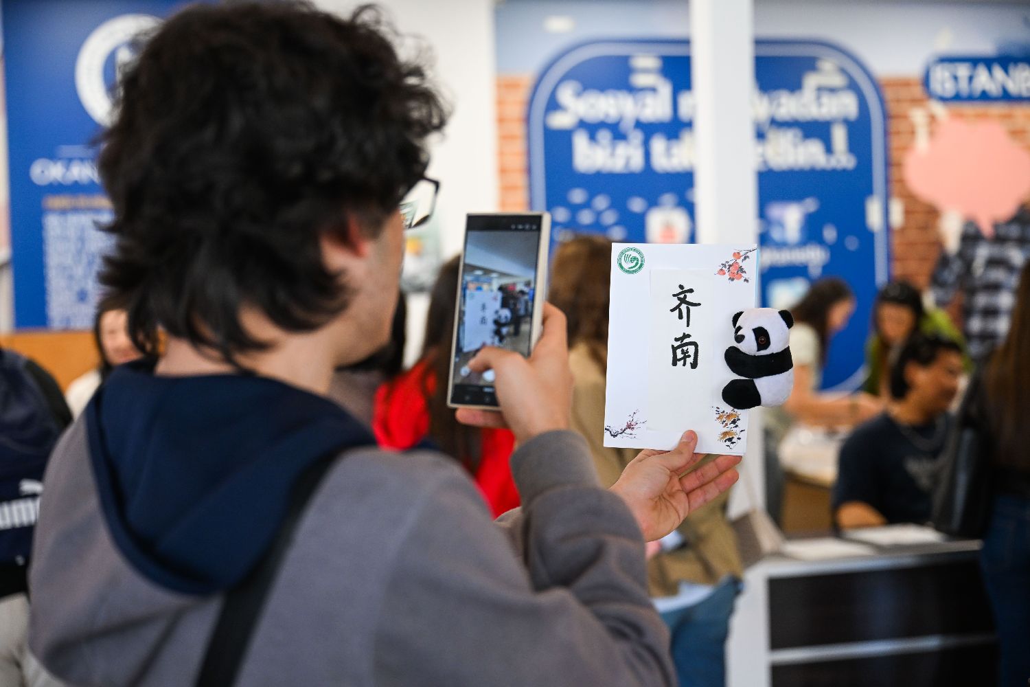 4月20日,在土耳其伊斯坦布尔奥坎大学,学生给自己的中文名字拍照。(图片来源:本文图片均据新华社)