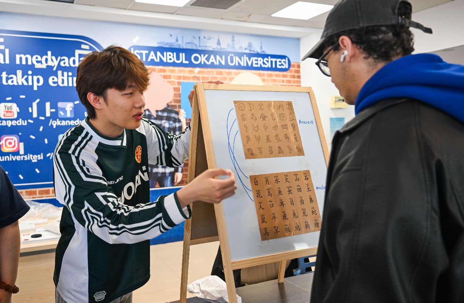 4月20日,学生在土耳其伊斯坦布尔奥坎大学体验书写中文。