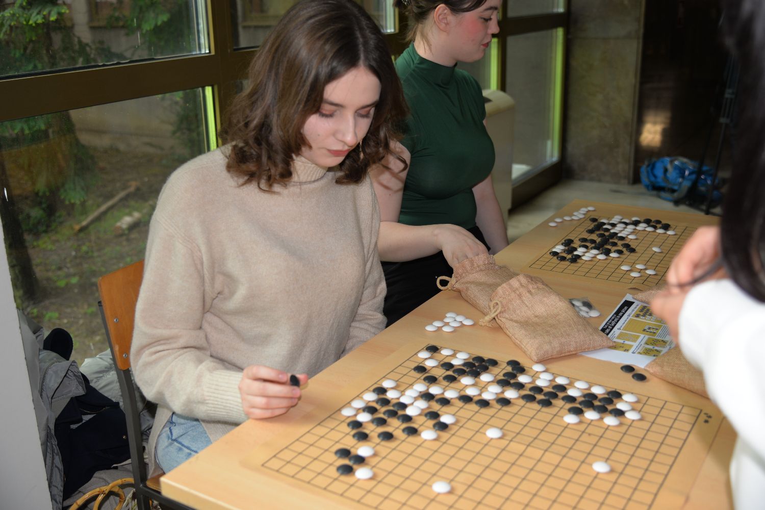 4月21日,克罗地亚学生在萨格勒布大学人文学院举行的“国际中文日”庆祝活动上体验围棋。(图片来源:新华社)