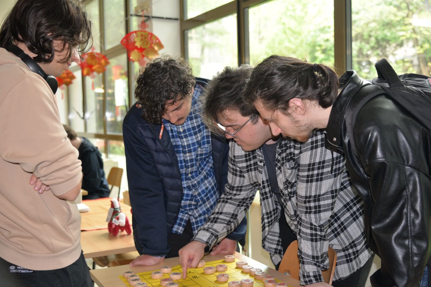 4月21日,克罗地亚学生在萨格勒布大学人文学院举行的“国际中文日”庆祝活动上体验中国象棋。(图片来源:新华社)