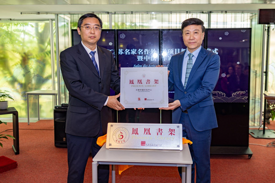 为推动更多江苏优秀文学作品和学术作品走出海外,活动现场启动了该项目国际阅读品牌“江苏名家名作国际沙龙”,并举行“巴黎中国文化中心凤凰书架”揭牌仪式。凤凰书架是由凤凰出版传媒集团发起并培育的国际阅读品牌,以促进中华文化在全球范围内有效阅读和传播。巴黎中国文化中心的“凤凰书架”是法国首个、海外共建的第18个。