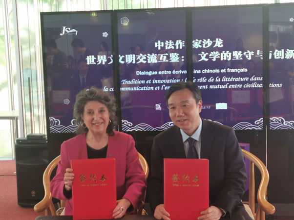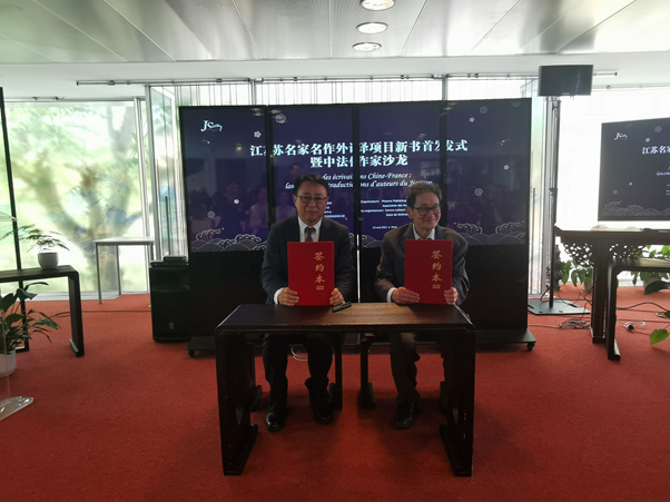 郑焱代表江苏省作协与法国中国文学读者俱乐部签约。