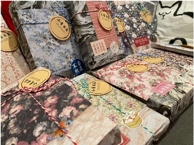 唐敬章为线上书店售出的每本书制作了精美的包装。