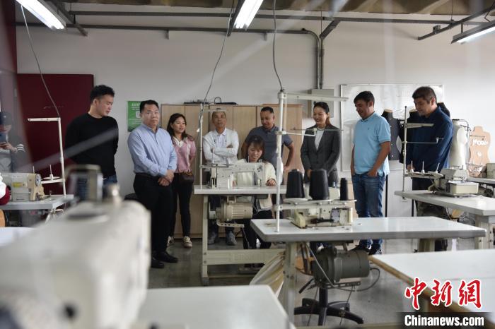 4月21日,巴西圣保罗,圣保罗多个华社的侨胞代表参观巴西圣保罗蒂拉登特斯社区城市文艺科学和体育中心的缝纫教室。