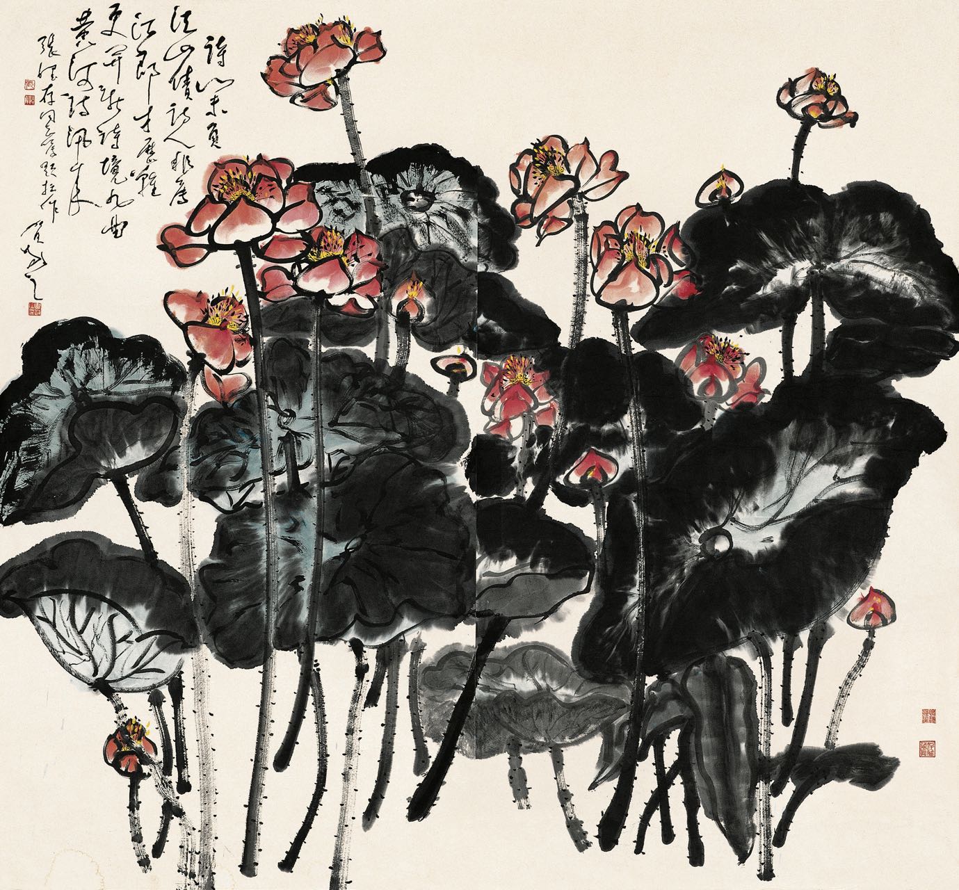 但真正开启国画的道路,是在张怀存1992年大学毕业后。大学毕业后的她走上了讲台,利用假期时间,张怀存经常去拜访吴冠中,饶宗颐和黄永玉等名师大家,亲身感受了大家们在宣纸上泼墨挥毫的场景,她便对国画便产生了浓厚的兴趣。那时的张怀存还不到20岁,凭着初生牛犊不怕虎的勇猛劲,她摩拳擦掌跃跃欲试,小小的她就跟在这些名师大家身边一起画。她还曾去拜访过关山月,只求指点一二。尽管张怀存没有经历过系统的国画学习,但在这些赫赫有名前辈们的言传身教中,张怀存逐渐自成画风。