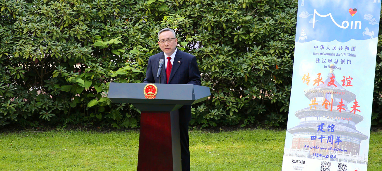 今年是中德建立全方位战略伙伴关系10周年,朔尔茨总理刚刚到访中国,为中德合作注入新动力。作为亲历者和推动者,总领馆亦见证了北德对华合作40年来一路生花,硕果累累。双方经贸合作活力迸发,2023年北德对华贸易总额达335亿欧元;地方合作亮点纷呈,双方已建立20余对省州和城市层面友好关系;人文交流蒸蒸日上,友好民意基础愈发牢固。孔子曰,四十而不惑。希望我们都能以不惑的定力,志存高远,笃行不怠,携手共促北德对华合作之花更加绚烂多彩,芬芳四溢。
